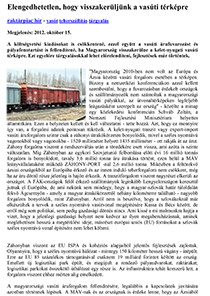 | 2. | Elengedhetetlen, hogy visszakerüljünk a vasúti térképre (Magyar Hírlap -raktárpiac hír/ media/magyarhirlap20121015.pdf vasút teherszállítás tárgyalás ) |